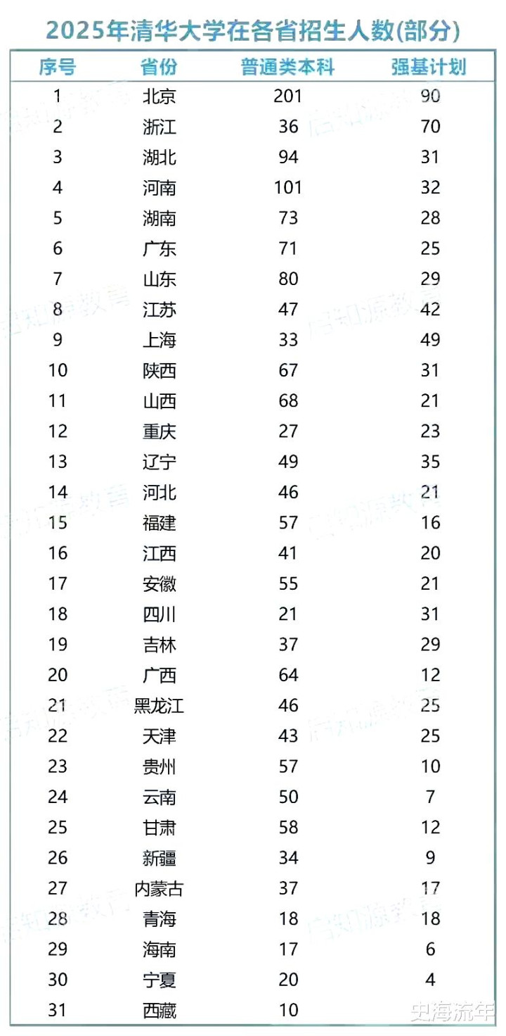 若是从清华大学“强基贪图”的招生东谈主数来看,咱们又会有新的阐明和发现。在北京市是90东谈主,排行第一位。在浙江省是70东谈主,排行第二位。在上海市是49东谈主,排行第三位。在江苏省是42东谈主,排行第四位。