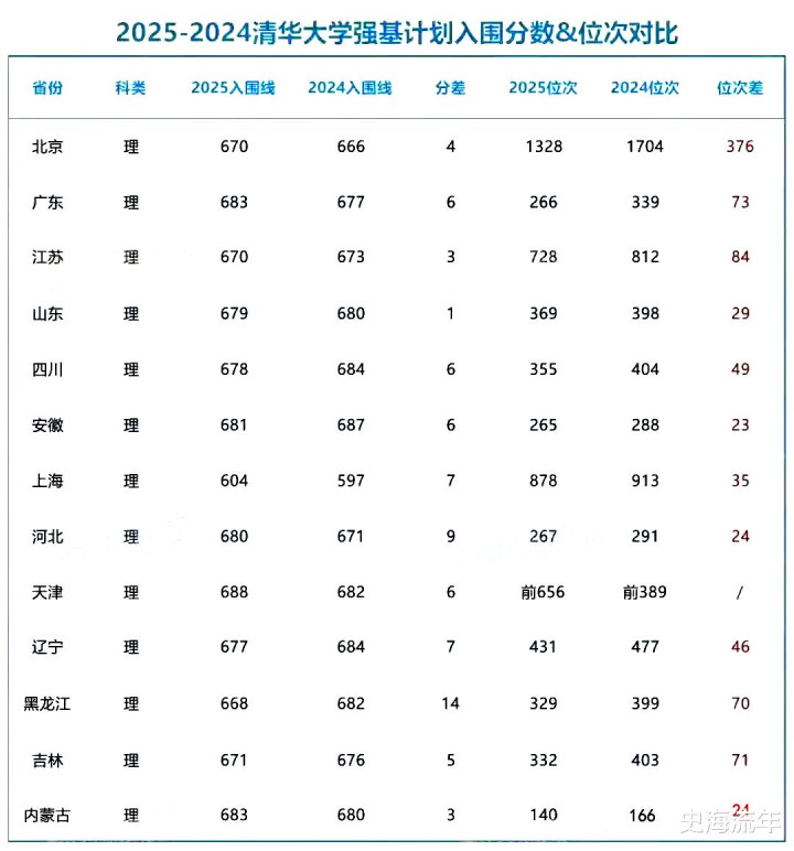 在广东省的入围分数线是683分,比2024年提高了6分,位次提高了73位。在江苏省的入围分数线是670分,比2024年裁汰了3分,位次提高了84位。在山东省的入围分数线是679分,比2024年裁汰了1分,但位次却提高了29位。