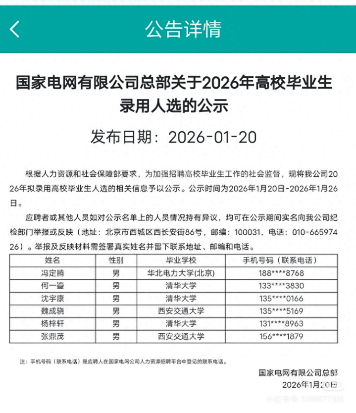 国度电网有限公司总部2026年公示名单,一共登科了6名学生,其中3名学生来自清华大学,2名学生来自西安交通大学,1名学生来自华北电力大学,齐来自电力强校,清华大学的电气工程学科评估A+,西安交通大学的电气工程学科评估A+,十足是国内电气行业最顶尖的存在,华北电力大学诚然是211,但十足是电力系统的黄埔军校,学科评估是A.对明确念念插足电网的学生来说,华电十足是明确的聘请。