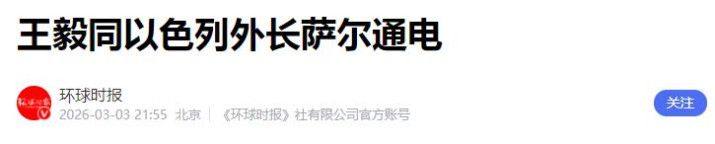 王毅同以色列外长萨尔通电——环球时报