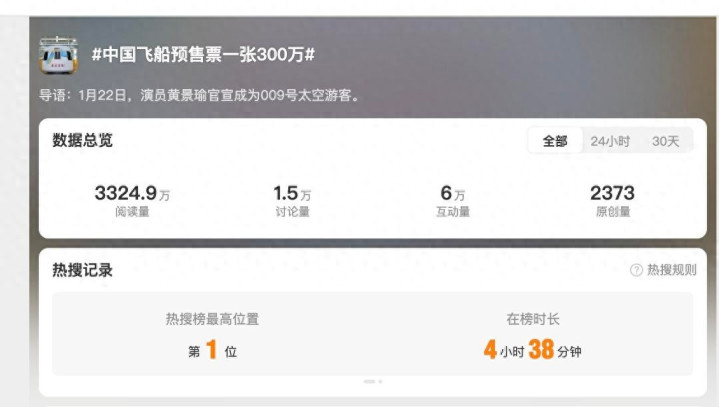 近日,话题“中国飞船预售票一张300万”登上热搜榜,天外旅行的话题引起了网友的广博相干。