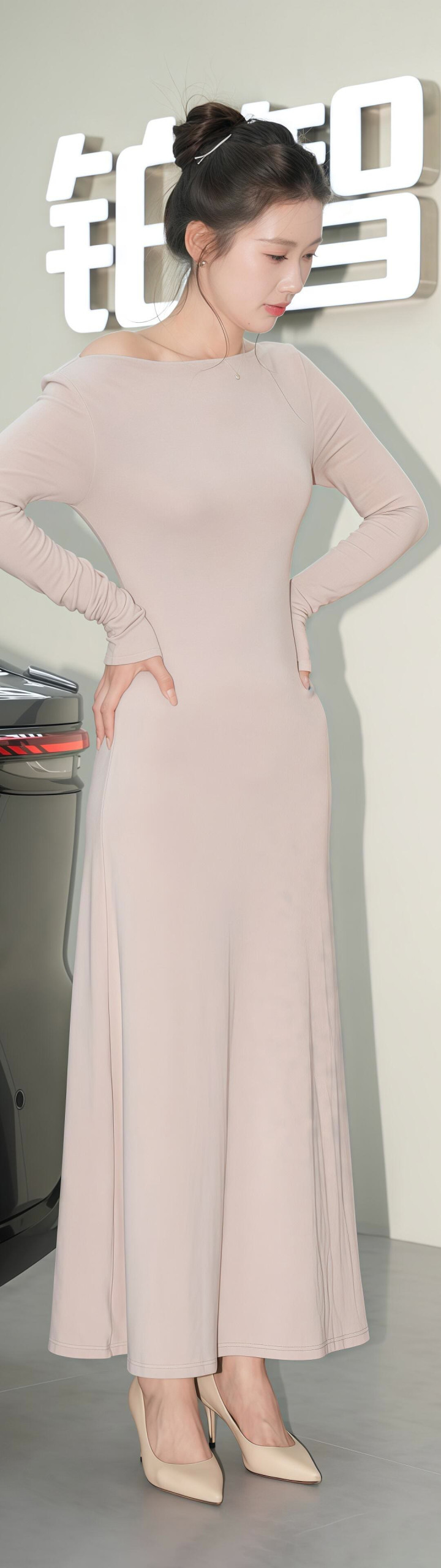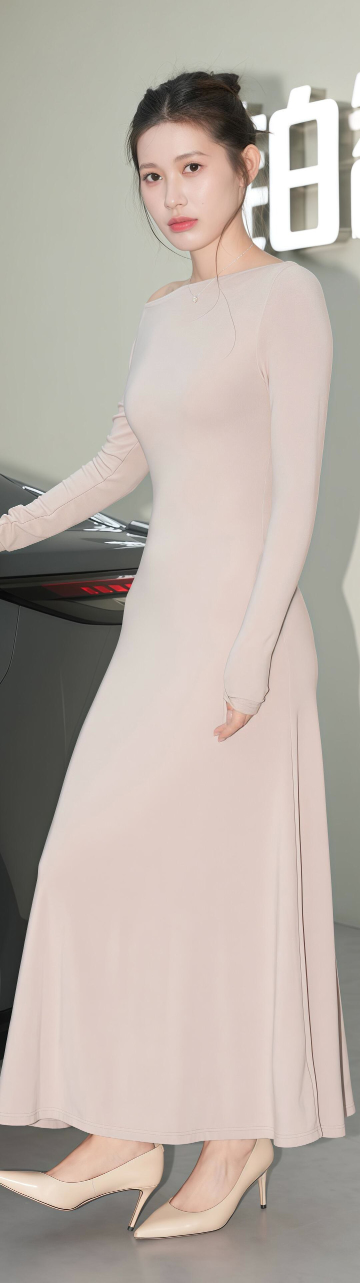 第一眼看到这位女生,就被她身上那种“不动声色却惊艳全场”的气质击中了。她身穿一袭裸粉色长裙,站在展台前宛如一幅静谧的画作——莫得繁复的打算,却处处表露着高档与自若。