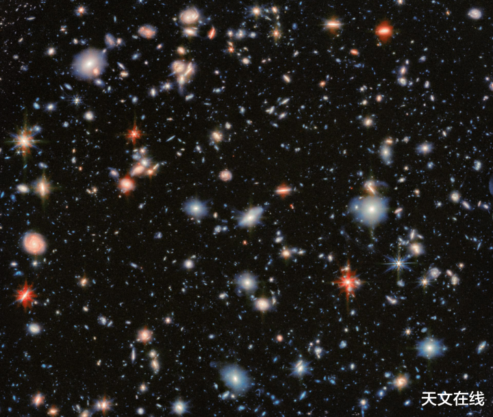 这张来自好意思国国度航空航天局欧洲空间局加拿大空间局詹姆斯韦布空间千里镜的图像,从新不雅测了天际中最具秀美性的区域之一——哈勃超深空场。欧洲空间局韦布,好意思国国度航空航天局及加拿大空间局,G.厄斯特林,P.G.佩雷斯冈萨雷斯,J.梅林德,JADES融合团队,MIDIS融合团队,M.扎马尼(欧洲空间局韦布)