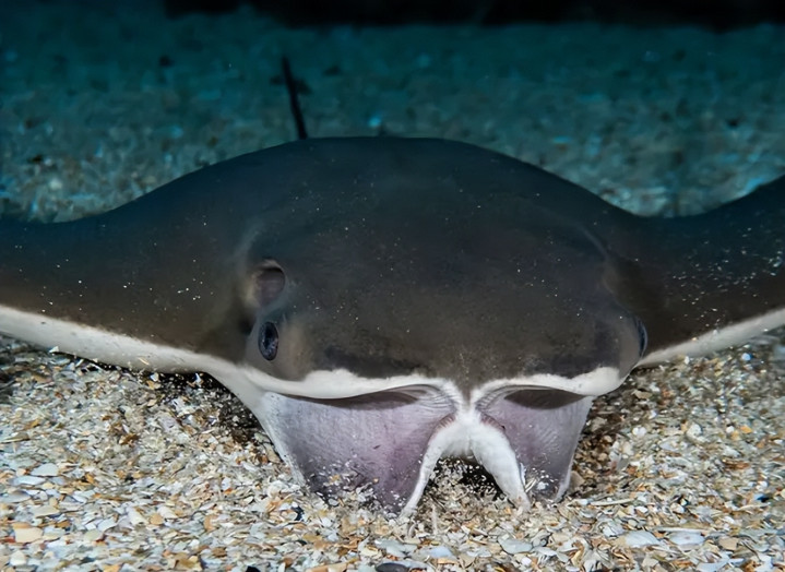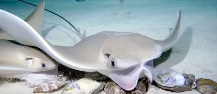 牛鼻鲼相当可爱吃双壳类软体动物,念念必它们的牙齿相当强横吧?确乎,它们会用雷同水磨石的齿板碾碎贝壳来进食,大部分碎壳会被吐出去,不外小部分会被吞下,不疼痛,又不是消化不了。科学家频繁在牛鼻鲼的胃和螺旋瓣的发现大批碎壳,也没见牛鼻鲼有什么不适的,可能还补钙呢。