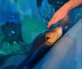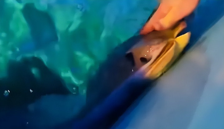 这只大欧好意思牛鼻鲼被摸得一直翻动吻鳍,看来确切是在讨食了,吃东西翻吻鳍算是风气性作为。