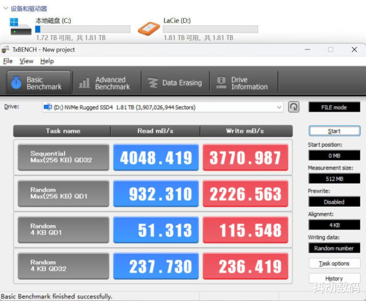 实测在Windows 阵营下照旧有好多设立开动撑合手USB 4接口了,在USB 4接口下测试雷孜LaCie Rugged SSD4金刚钻Plus读写推崇如图,读取速率闲散达到4000MB/s的峰值,写入速率也达到了3770MB/s。