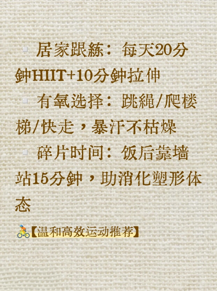 ▫️有氧罗致:跳绳/爬楼梯/快走,暴汗不没趣