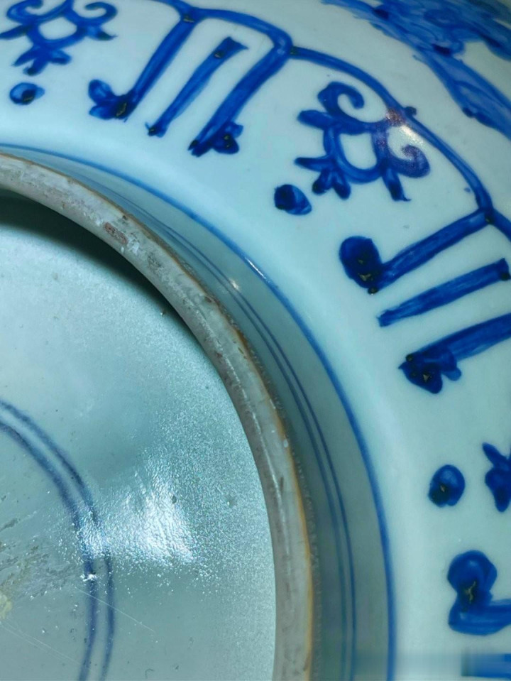 胎足特征:胎体耐心,露胎处(圈足)可见浅淡的“火石红”及粗松的胎质。圈足照看偶然期特色(如万历的斜削足)。