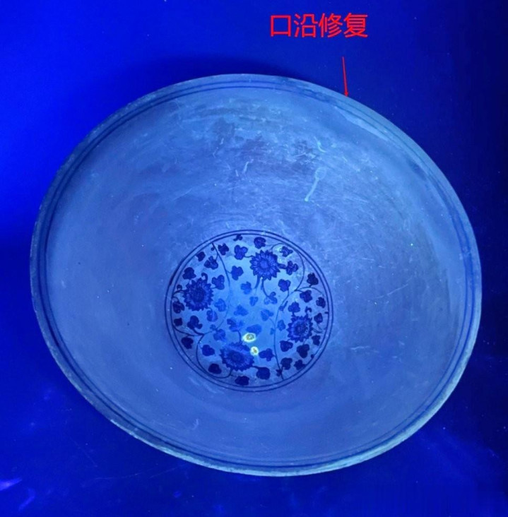 青料发色:是否具有嘉万技能典型的蓝中泛紫、浓艳晕散的特色,或明末的青翠/灰蓝色调。
