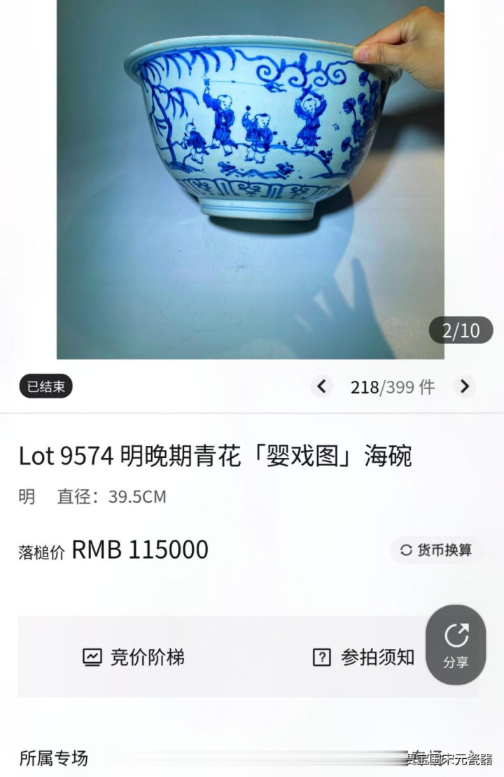 若您要赏玩一件明晚青花婴戏图海碗,可存眷: