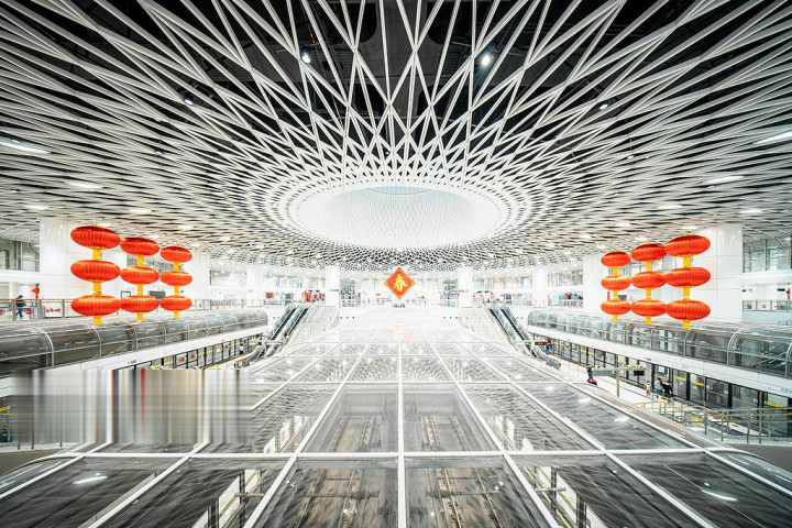《惊蛰无声》在广东深圳多地取景拍摄,预报片发布以后,算作影片中枢取景地之一的深圳岗厦北地铁站,凭借极具改日感的空间盘算推算成为热点打卡点。