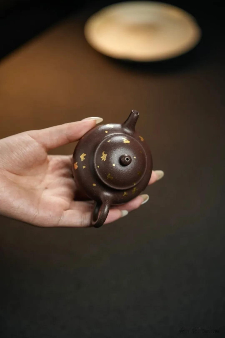 壶身的撒金守密,宛如夜幕中不经意散落的星辰,又似岁月在器物上留住的、婉曲的鎏光。这不仅是视觉的巧饰,更是对“时期”之好意思的礼赞。真的的撒金,并非浮华炫技,而是期待在与茶汤的终年润泽、与手掌的反复摩挲中,金点微微内敛,与紫泥的光泽愈发长入,生出唯一无二的、属于使用者个东说念主的温润宝光。这经过自身,即是好意思学孕育的经过——器物在时期里波折,东说念主在与器物的共处中,心理亦被津润得愈发千里静。日常的使用,由此成为一场徐徐而好意思好的共同修行。