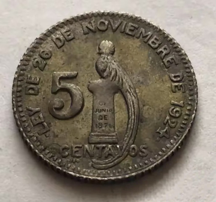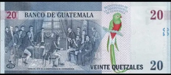在危地马拉的钱币上,咱们能见到他们的国鸟--凤尾绿咬鹃,