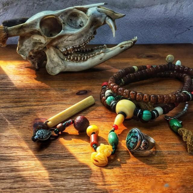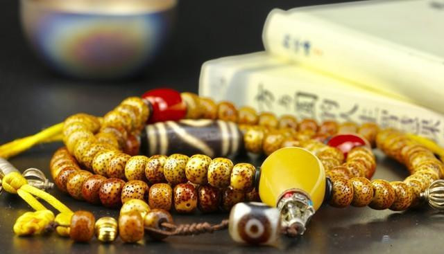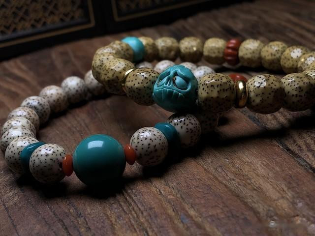 菩提根其实是贝叶棕树的种子打磨出的珠子,相传唐代玄奘法师西去取经时,佛经即是刻在贝叶上的,是以在释教中菩提标记贤人。