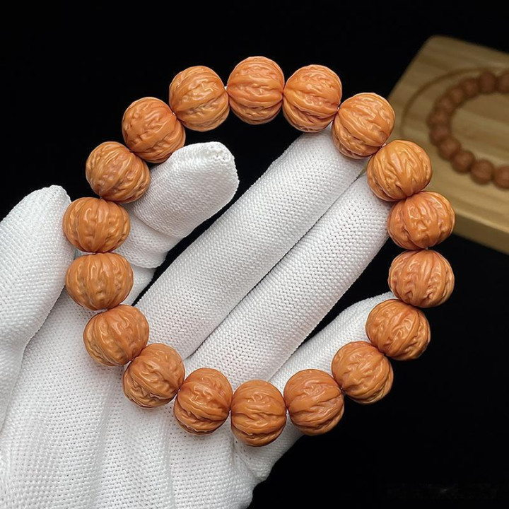 猴头核桃连年来因短视频平台爆火,险些是橄榄核的平替版!小尺寸猴头核桃手串抓在手里超舒坦,一个月就能盘出枣红色包浆,像捏减压球一样上瘾。